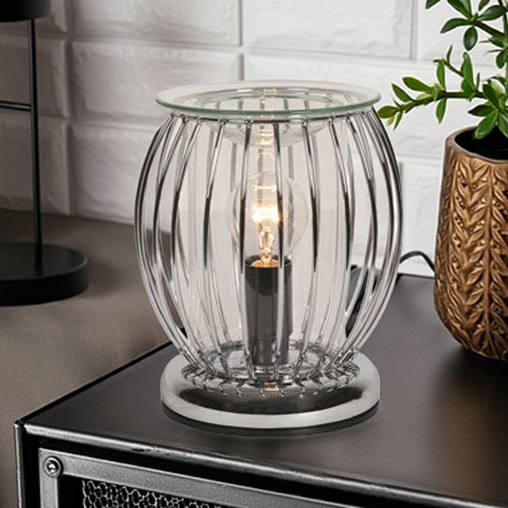 Electric Wax Melt Burner Touch Chrome Framework Industrial Oval 17cm AR1957