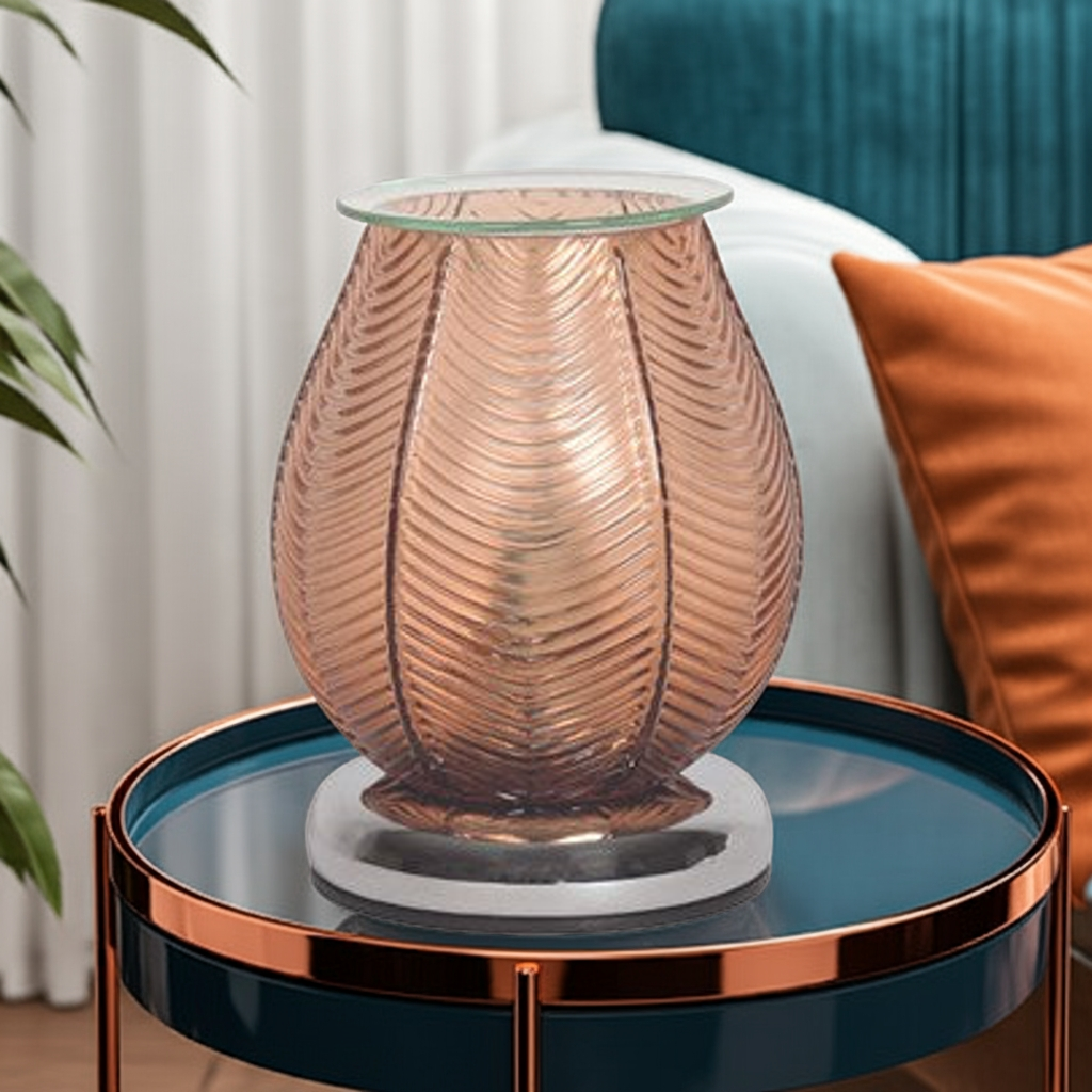 This beautifully designed burner features a warm amber lustre finish with a distinctive ribbed texture, creating depth and elegance in any room. Its timeless style suits both classic and contemporary interiors with ease.