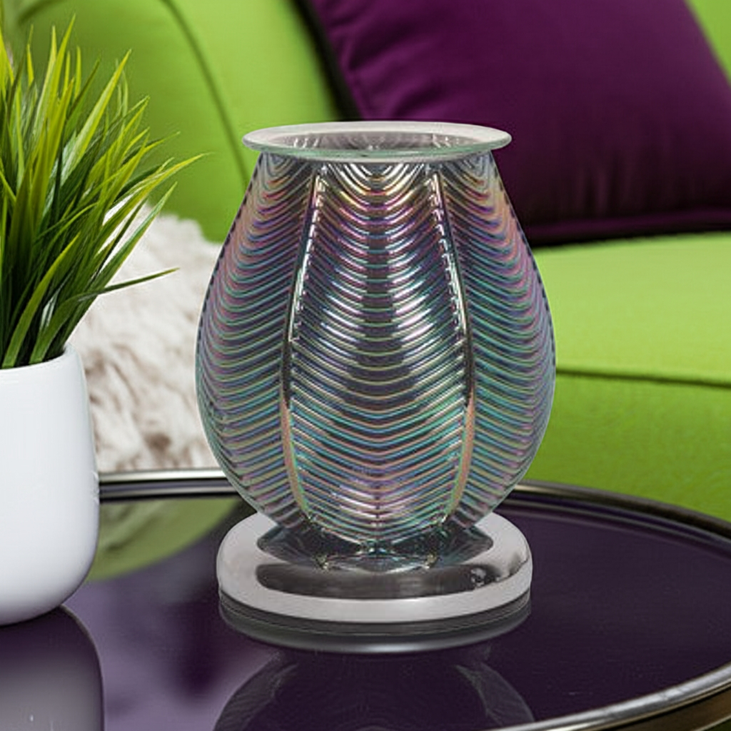 Elevate your home decor with the Electric Wax Melter Touch - Ribbed Jade Lustre 18cm, where classic elegance meets modern convenience. This stunning wax melter features a ribbed, textured glass design finished with a vibrant jade lustre, bringing a glamorous Art Deco aesthetic to any space.