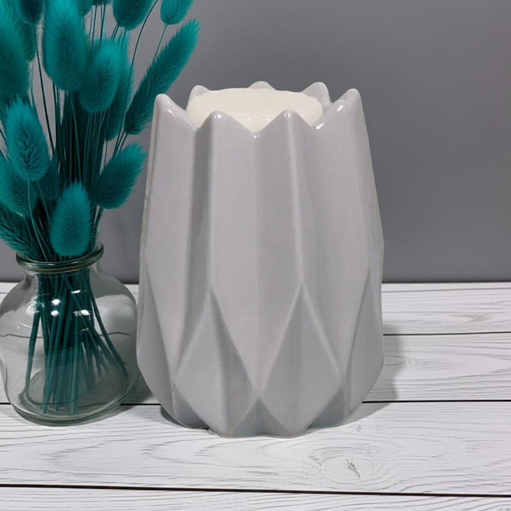 Looking for a stylish and elegant way to enjoy your favourite scented wax melts or oils? Look no further than our Geometric Grey Wax Melt/Oil Burner Tea Light Burner.