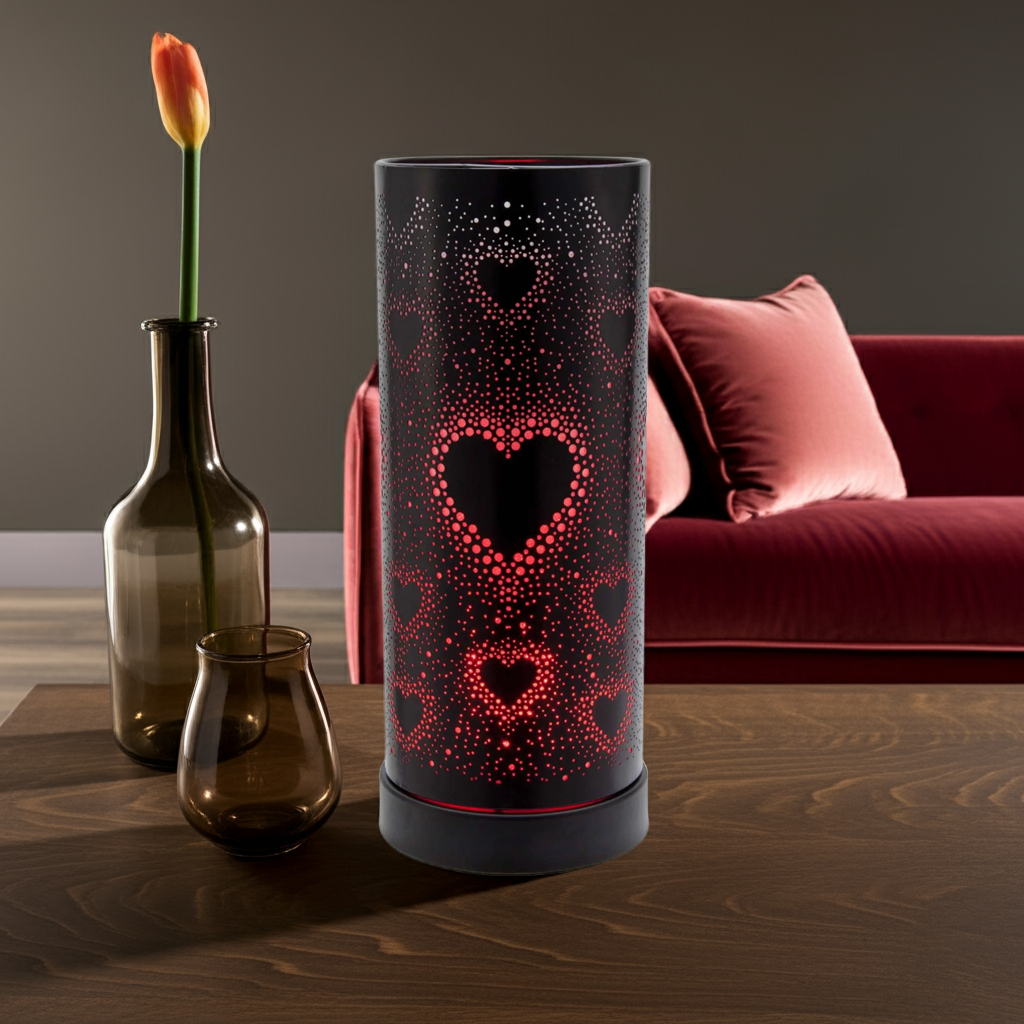 Electric wax melt burner fans – add warmth, colour, and fragrance to your home with our Colour Changing Hearts Burner in classic black.